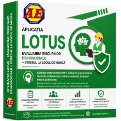 Aplicația LOTUS este o aplicație software utilizată pentru evaluarea riscurilor psihosociale și a stresului profesional, prin colectarea și analiza datelor la nivel de organizație și identificarea factorilor de risc specifici activităților desfășurate.